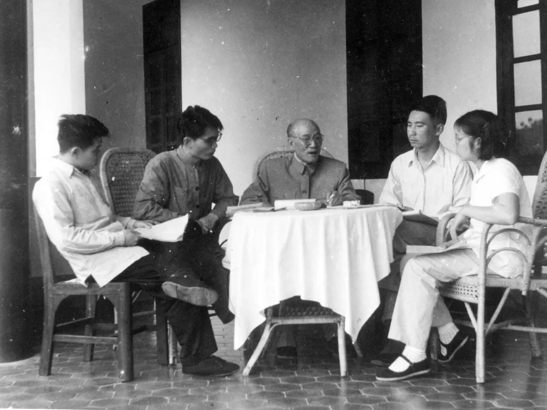 △ 陶德麟先生(右二)与李达老校长(中)在一起