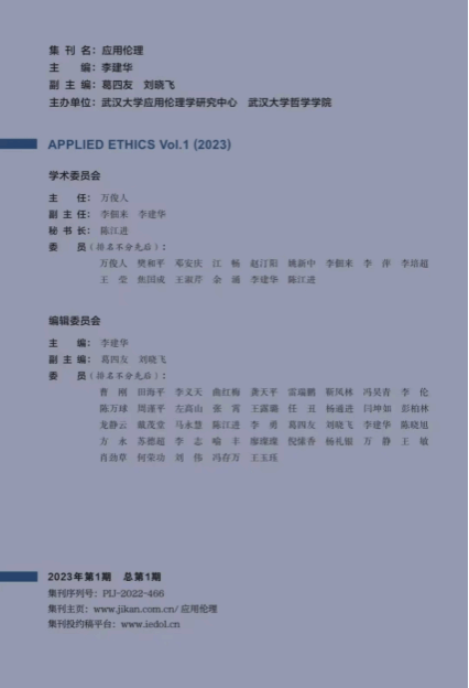 《应用伦理》是由成人视频 应用伦理学研究中心、成人视频 主办的以适应中国应用伦理学研究与实践的飞速发展、应用伦理专业教育和人才培养的紧迫需要而举办的综合性专业学术集刊。《应用伦理》由万俊人教授任学术委员会主任,李建华教授任主编,葛四友教授、刘晓飞教授任副主编。