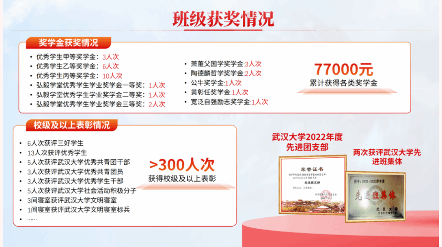 三年来,2020级哲学基地班的同学们奋发拼搏、勇于开拓,累计获得各类奖学金77000元,超过300人次获得校级及以上表彰。2020级哲学基地班团支部获评成人视频 先进团支部,2020级哲学基地班连续两年获评成人视频 先进班集体。2020级哲学基地班源源不断地收获集体荣誉,也绽放着夺目的个体光芒,展现了爱智、求真、向善、致美的良好风貌。