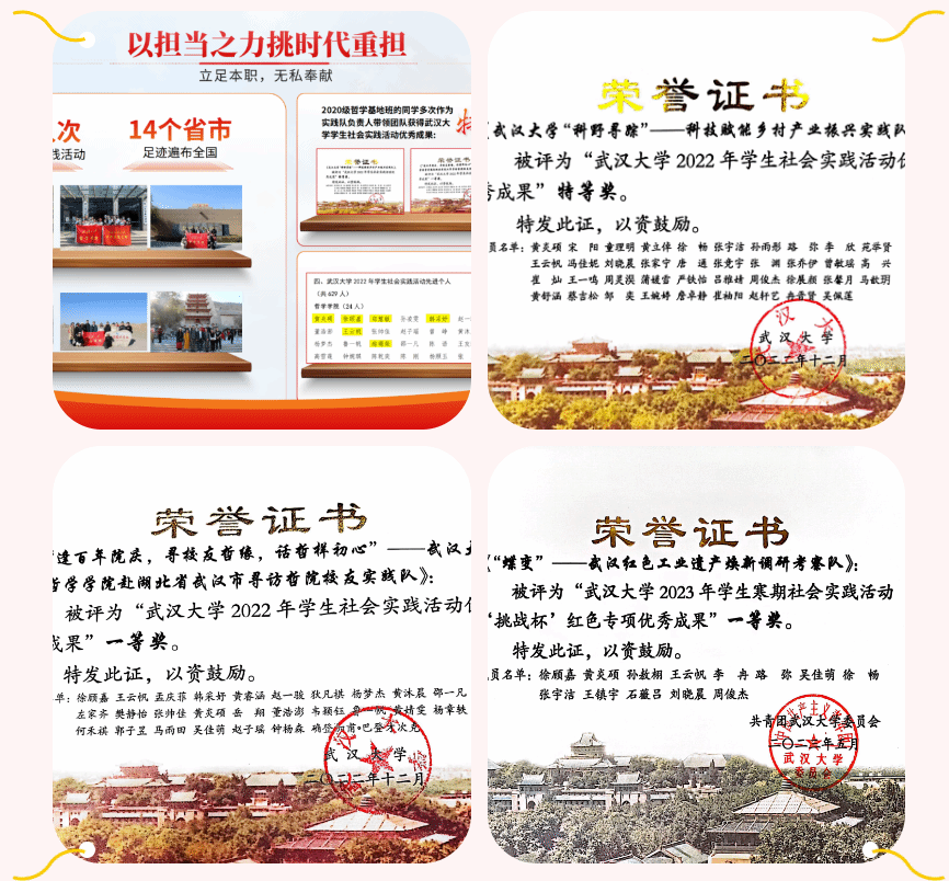 书斋之外:上下求索宜躬行。2020级哲学基地班的同学们积极用行动挑起时代重任。黄炎硕、徐顾嘉同学作为项目负责人带领团队在第十八届“挑战杯”全国大学生课外学术科技作品竞赛红色专项活动中获得全国特等奖和全国三等奖,不仅取得了成人视频 在挑战杯赛事中的历史最佳成绩,也实现了成人视频 在挑战杯红色专项赛事中的零突破。