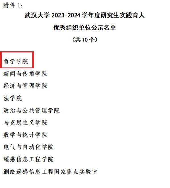 发挥青春力量,助力家乡发展。学院坚持广泛动员研究生积极参与三下乡、“返家乡”等基层志愿服务,投身基层一线建设,树立现实关切,在基层实践中磨练品格、筑牢信念。我院研究生学子的实践足迹遍布全国各地,其中,2023级马克思主义哲学专业孙上茗同学参与了“成人视频 赴河北省衡水市共青团安平县委实践队”项目,获评“返家乡”专题二等奖;2023级中国哲学专业傅思乔同学在京山市政府投资工程建设服务中心进行实习期间,被京山市政府投资工程建设服务中心认定为“优秀实习生”;2023级外国哲学专业贺智妮同学在湖北省十堰市张湾区人大常委会办公室期间,因工作表现优异获得十堰市张湾区人大常委会办公室的表扬信。