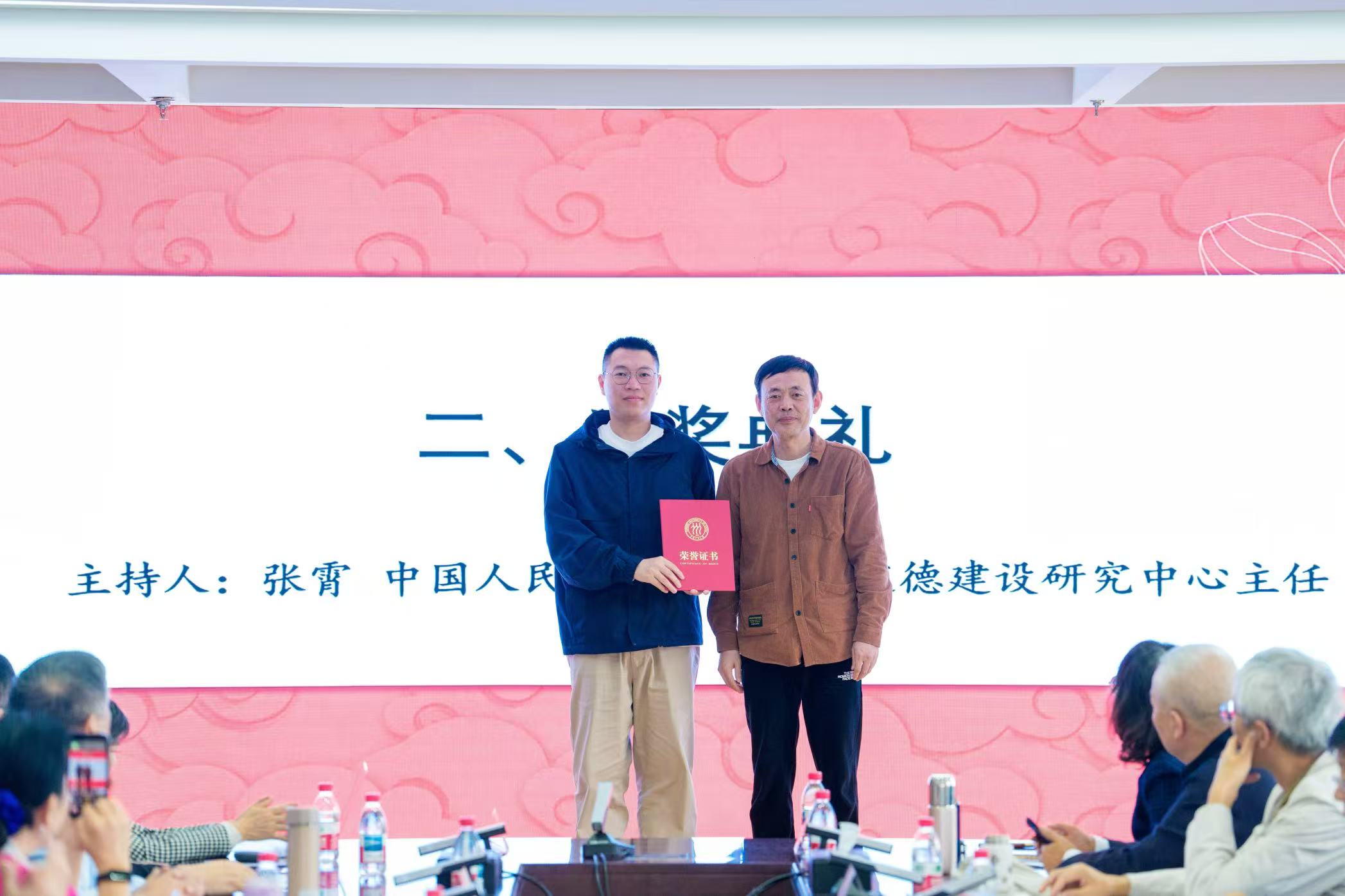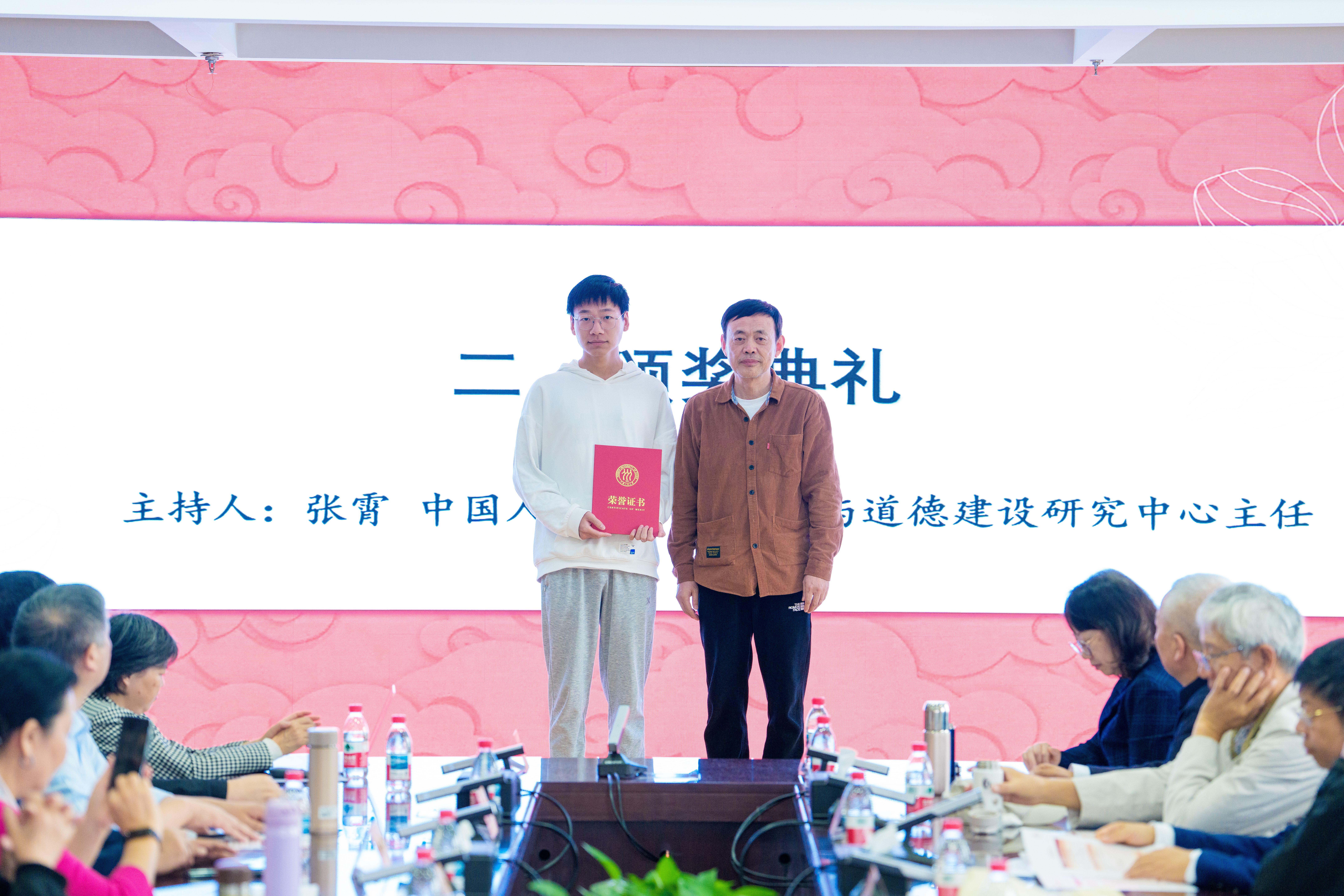 本网讯(通讯员徐勐)10月12日,中国人民大学成功举办第五届国杰论坛暨第五届罗国杰伦理学教育基金颁奖典礼。该基金由中国人民大学教育基金会设立,旨在弘扬罗国杰教授毕生致力于中国伦理学与道德建设事业的崇高精神,推动伦理学教育研究发展,促进社会道德风尚提升。基金每两年评选一次,奖励在伦理学研究、教学与社会道德教育宣传等方面作出突出贡献的个人与团体。其中,“优秀学生奖”面向全国高校及科研机构伦理学专业的本、硕、博学生,每届评选18人,包括一等奖2名、二等奖6名、三等奖10名。在本届评选中,我院2024级博士研究生徐勐荣获二等奖,2025级博士研究生魏亚杰荣获三等奖。