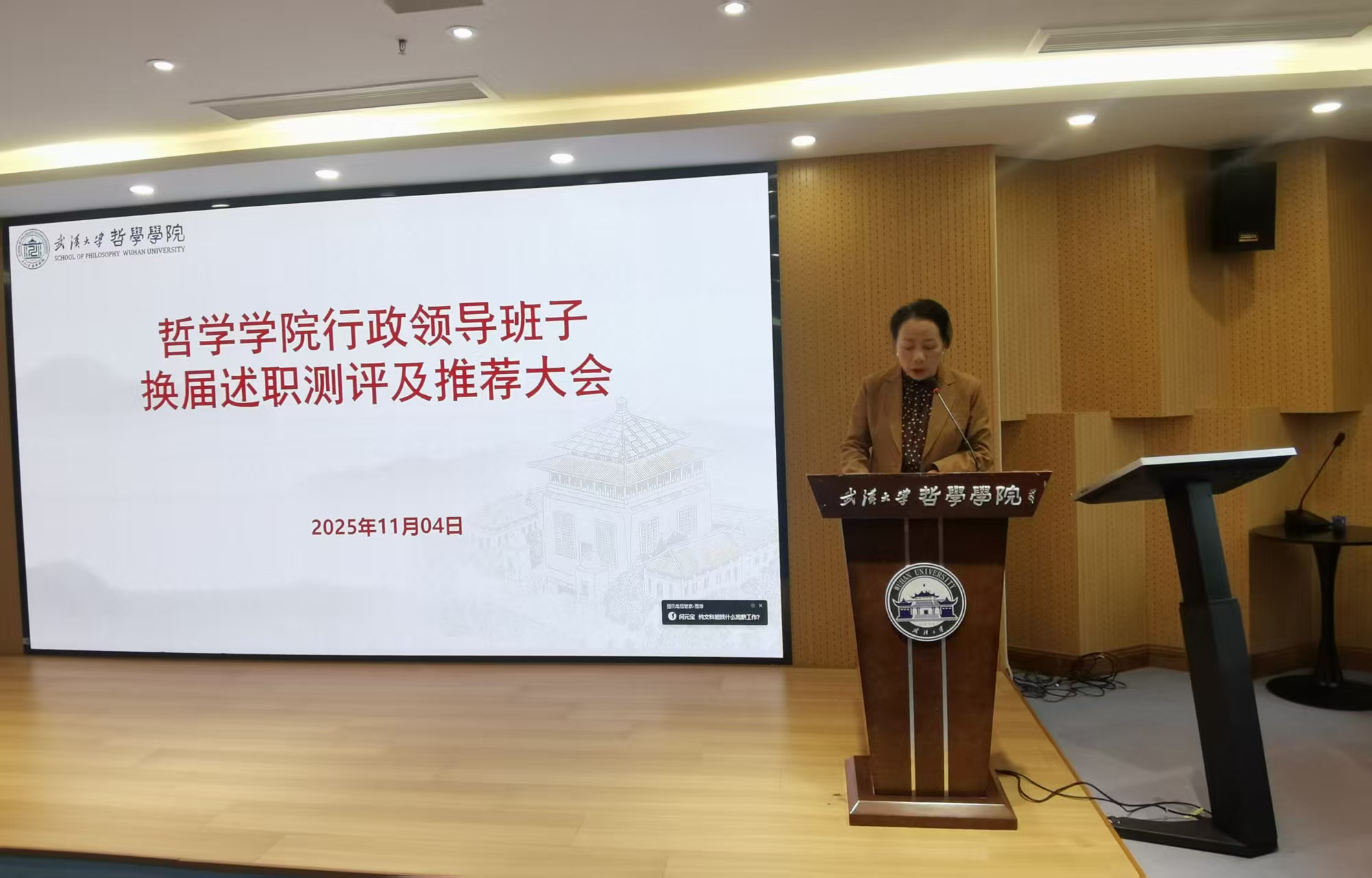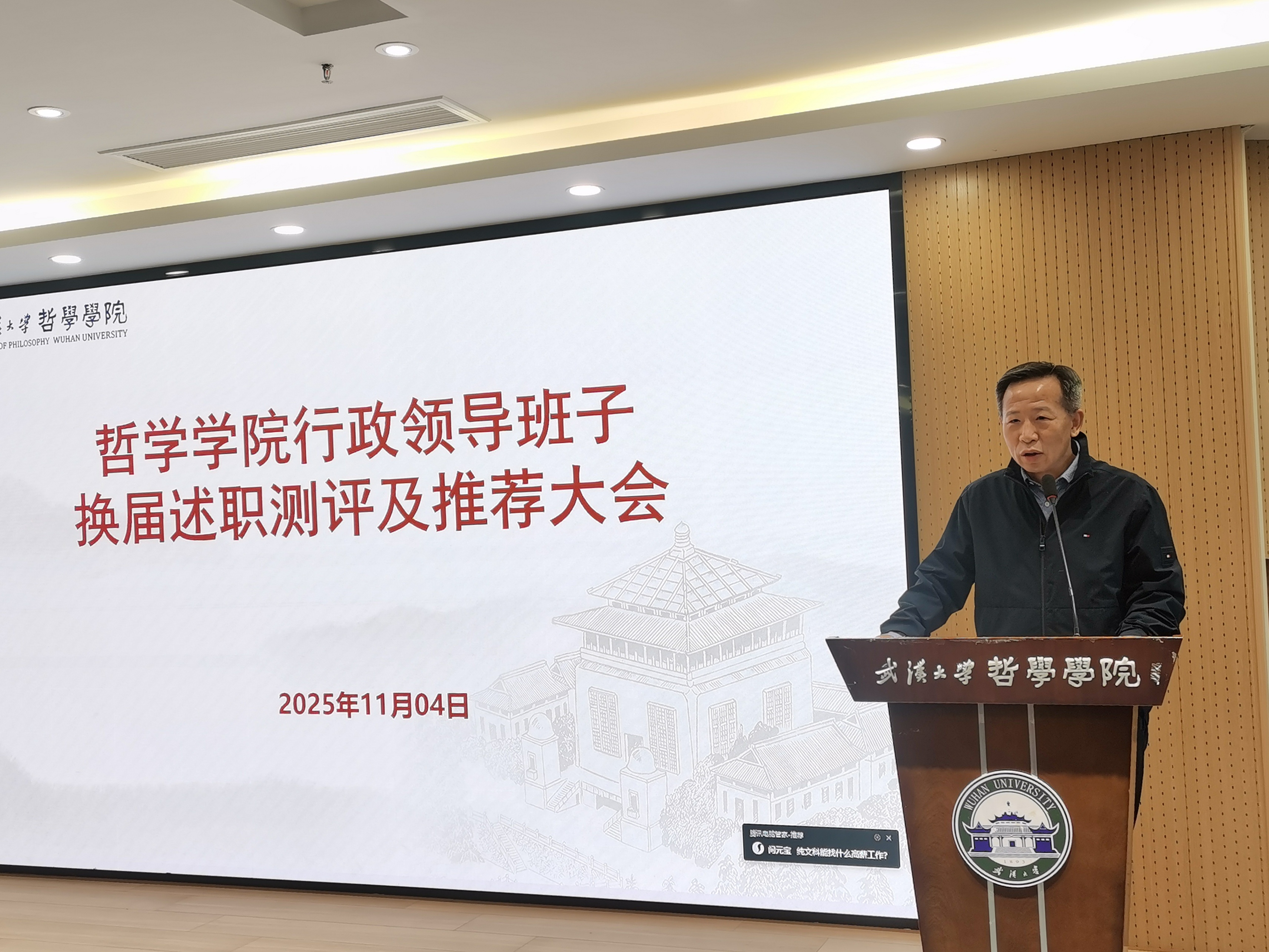随后,院长李佃来代表行政领导班子作任期工作述职报告。李院长全面回顾了任期内学院在学科建设、人才培养、科研创新、国际化合作交流以及行政工作所取得的显著成绩,同时客观分析了存在的问题及不足,并提出了未来发展的规划与展望,全面展现了班子履职尽责的工作实绩。行政领导班子成员黄超以书面形式进行个人任期工作述职,其述职材料已提前分发供与会人员审阅。