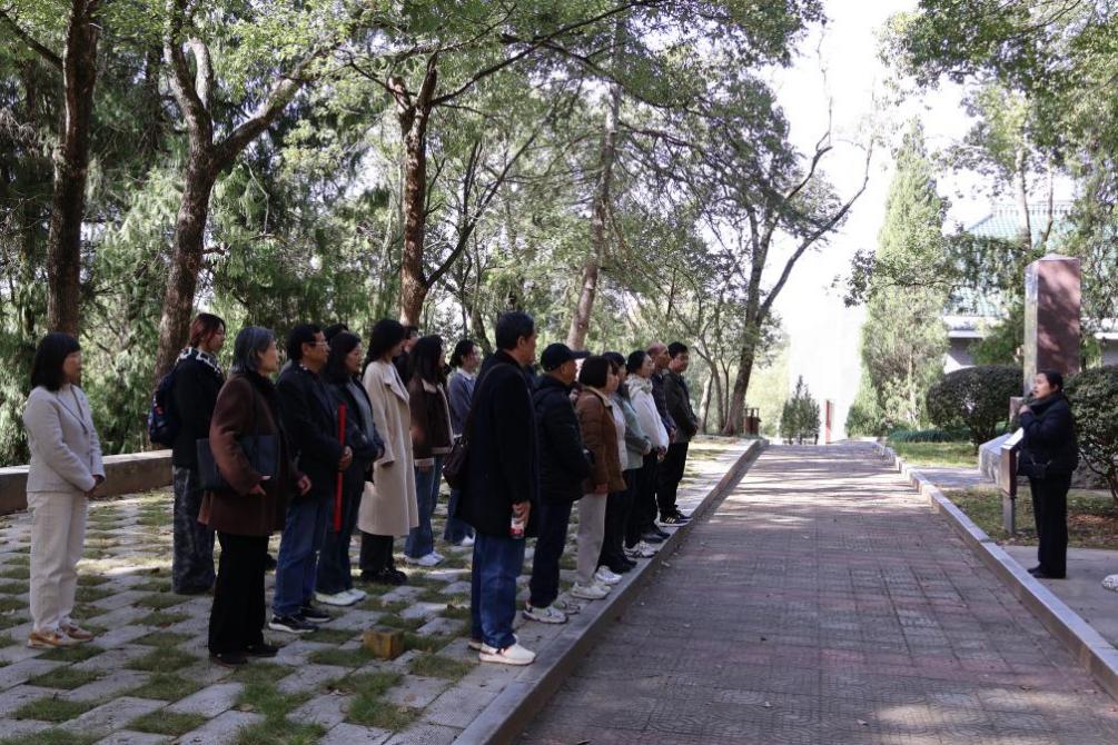 11月25日上午,师生一行抵达红安,首站前往黄麻起义和鄂豫皖苏区纪念园。苍松翠柏间,纪念碑巍峨耸立。全体师生列队肃立,现场聆听微党课《愿输血汗改山河》。伴随着工作人员的深情讲述,黄麻起义总指挥潘忠汝等烈士的英勇事迹跃然眼前,将大家带回了那段血雨腥风的觉醒年代。随后,在庄严的音乐声中,师生们向革命先烈敬献花束,深切鞠躬默哀,并在鲜红的党旗下重温入党誓词。铿锵有力的誓言在广场上空回荡,彰显了武大哲院人矢志不渝的政治本色。