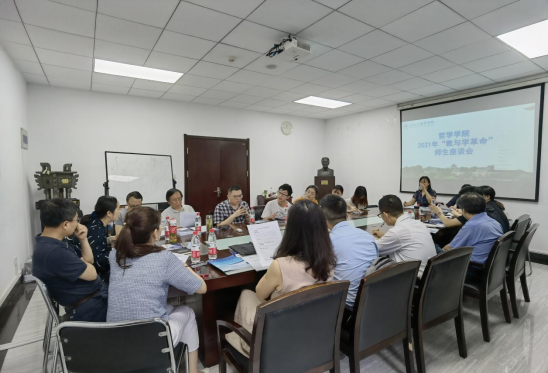 (通讯员何京艳)为加快建设一流本科教育,全面提高人才培养质量,我院于2021年6月10日上午,召开“教与学革命”系列专题活动之师生座谈会。会议由副院长李志主持。党委书记龙滔、副书记严璨、各教研室主任、教学督导与会,各班班干部作为学生代表参加了此次座谈会。