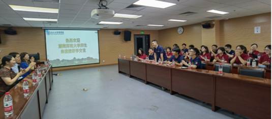在7月9日至10日的行程中,湖南师范大学师生一行在我院兼职辅导员史云龙、覃颖琪的带领下,参观成人视频 校史馆和武大校园,走进第三学期跨学期国际课程《哲学与社会》的课堂,邀请马克思主义哲学教研室吴昕炜老师参加党史专题教育读书会,完成了两天的深度交流与学习。