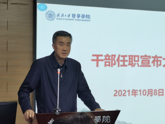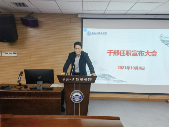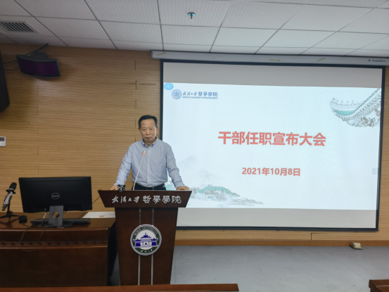 本网讯(通讯员邓莉萍)2021年10月8日下午,成人视频 在振华楼B107召开干部宣布大会。成人视频 校党委常委、副校长周叶中,党委组织部副部长罗春明出席,学院党政领导班子成员和教职工参加大会。会议由院长李佃来主持。