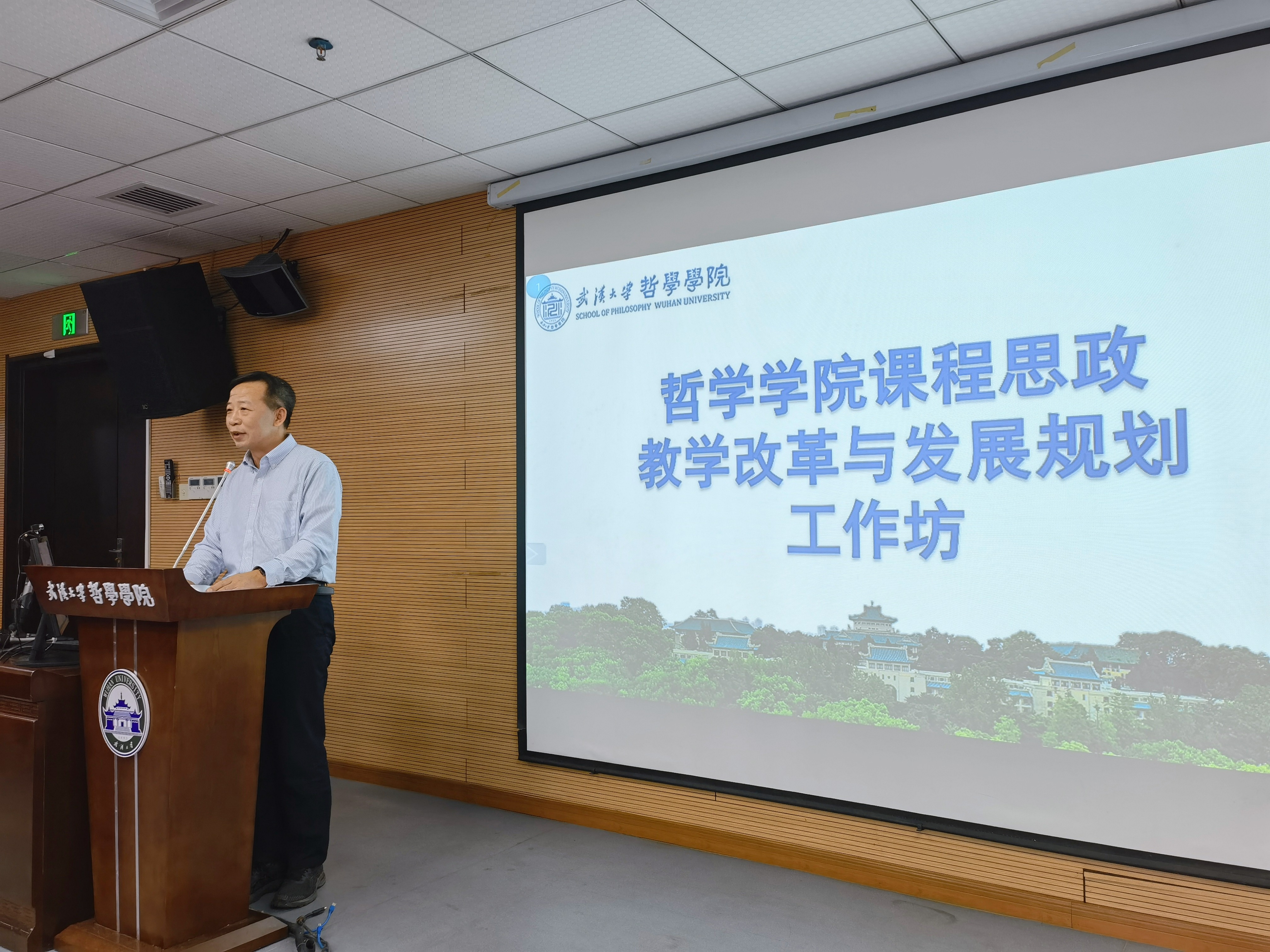 学院第一批课程思政项目建设的负责人或重要成员,吴根友教授、苏德超教授、喻丰教授以及周可副教授,分别围绕着各自的专业领域,阐述如何将课程思政与专业教育相融合、如何优化课程思政内容供给从而发挥课程育人功能、提高育人水平的精辟见解。钟年教授作为学院第二批课程思政建设项目的负责人代表,对“社会心理学”课程的思政切入点进行了深入阐述,介绍了社会心理学应当如何引导学生学好心理学理论知识的同时深入社会并最终服务于社会的独到看法。