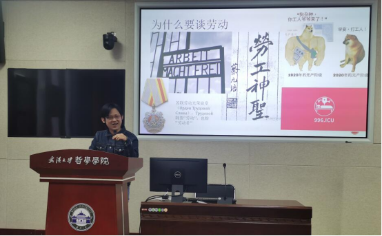 在第一部分中,邢老师首先总结了关于劳动的几个相关联的命题,包括劳动是社会财富的源泉,劳动是人的本质以及劳动是光荣的,在这三个关于劳动的表述中,前两个大致是关于劳动的事实判断,后一种则是对劳动进行的价值判断。邢老师指出,当我们在进行判断时,存在一些争议性的问题,最基本的问题就是劳动与劳动者区分以及劳动概念的普遍性和历史性的区分。即,当我们在谈论劳动时,是真的在谈论劳动,还是在谈论劳动者?劳动概念是一个普遍性的概念,还是一个历史性的概念?邢老师认为,劳动作为一个历史性的概念有其发展过程,从巴塔耶、霍克海默和阿多诺的一些著作中可以看出“劳动”这一概念在资本主义生产体系的影响下,从一开始负面的形象转变成了一种符合资本主义生产目的的高尚品德。而马克思、恩格斯也在《德意志意识形态》中提出,共产主义社会要消灭劳动。此外,为明确劳动的历史性,邢老师以普殊同和福柯为例提供了两种路径:1.在普殊同看来,劳动不是超历史的概念,而仅仅在资本主义社会中居于支撑性地位;2.在福柯看来,资本主义的发展定义了一种新的罪行——不劳动。这两种路径为我们研究劳动概念的历史性提供了新的思路。