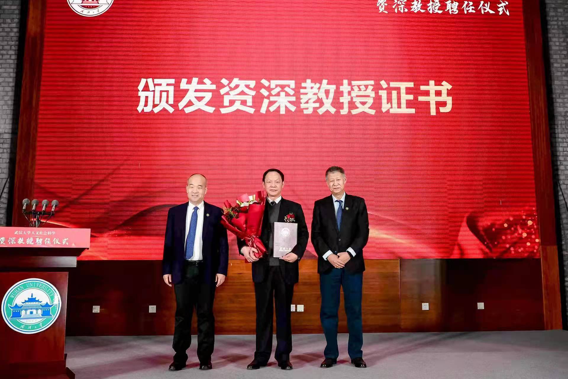 仪式由校党委副书记沈壮海主持并代表学校宣读聘任文件,校党委书记韩进依次为三位学者颁发了“资深教授”证书。