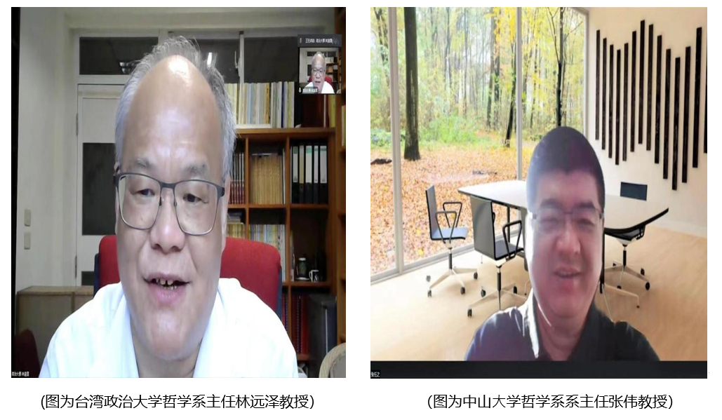 台湾政治大学哲学系主任林远泽教授主持论坛开幕式, 中⼭⼤学哲学系主任张伟教授、北京⼤学哲学系副系主任程乐松教授、复旦⼤学成人视频 副院⻓林晖教授、武汉⼤学成人视频 副院长黄超教授、台湾政治大学哲学系主任林远泽教授分别致辞。