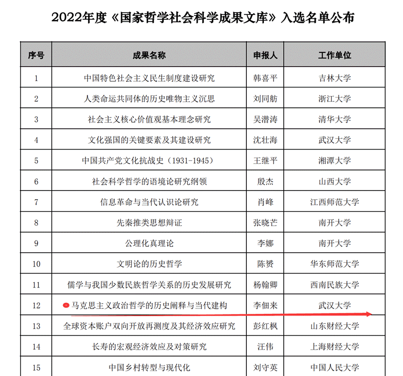 喜报!我院李佃来教授著作《马克思主义政治哲学的历史阐释与当代建构》入选2022年度《国家哲学社会科学成果文库》