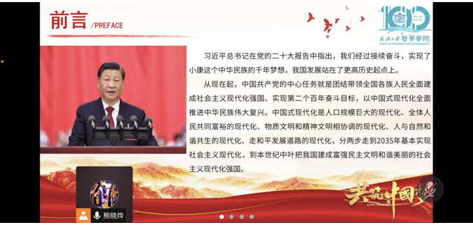 结合报告精神,刘博士以百年征程中陈延年、陈乔年,以及陈潭秋等人物的青春故事,号召当代青年在新征程上砥砺奋进,展现最亮丽的青春风采。在形式上,刘博士结合热门电视剧《觉醒年代》的片段及相关文创,展示了革命先辈的青春风采与感人事迹,并结合相关人物—李达,引出了成人视频 的历史,表明了成人视频 在党的历史中的相关贡献。