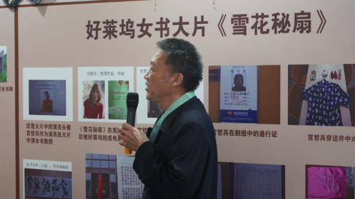 活动中,宫哲兵教授带大家现场观看并解说“女书发现之旅”、“好莱坞女书大片《雪花秘扇》”、“女书文物与书法作品”、“发现女书的早期报道”、“一篇女书换了一个头像”,观众通过在现场看到女书相关的服装、被面、腰带、扇子、竹简、信件等文物级物品对女书有了进一步的深入了解。