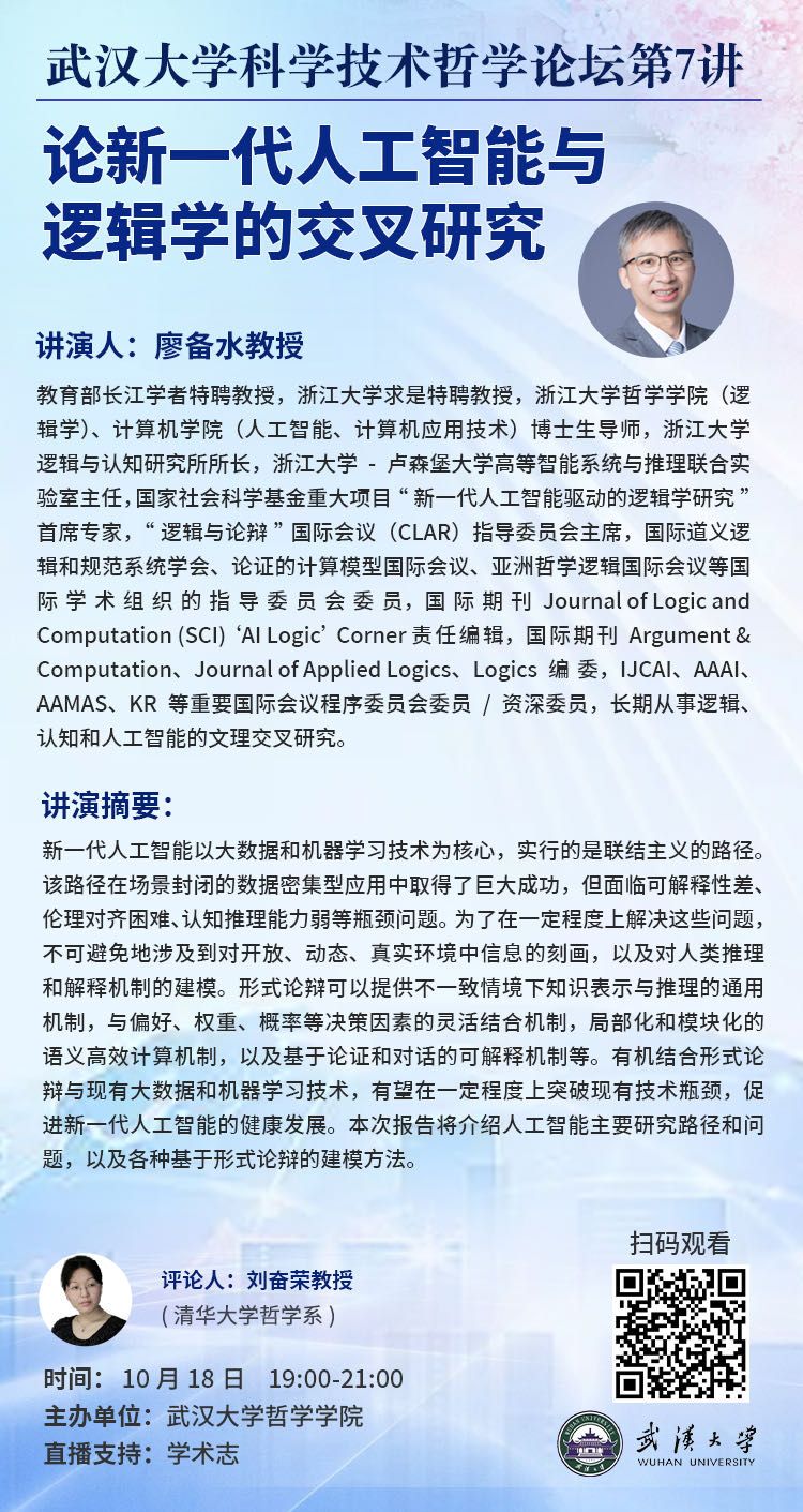 【10月18日】成人视频 科学技术哲学论坛第7讲:论新一代人工智能与逻辑学的交叉研究