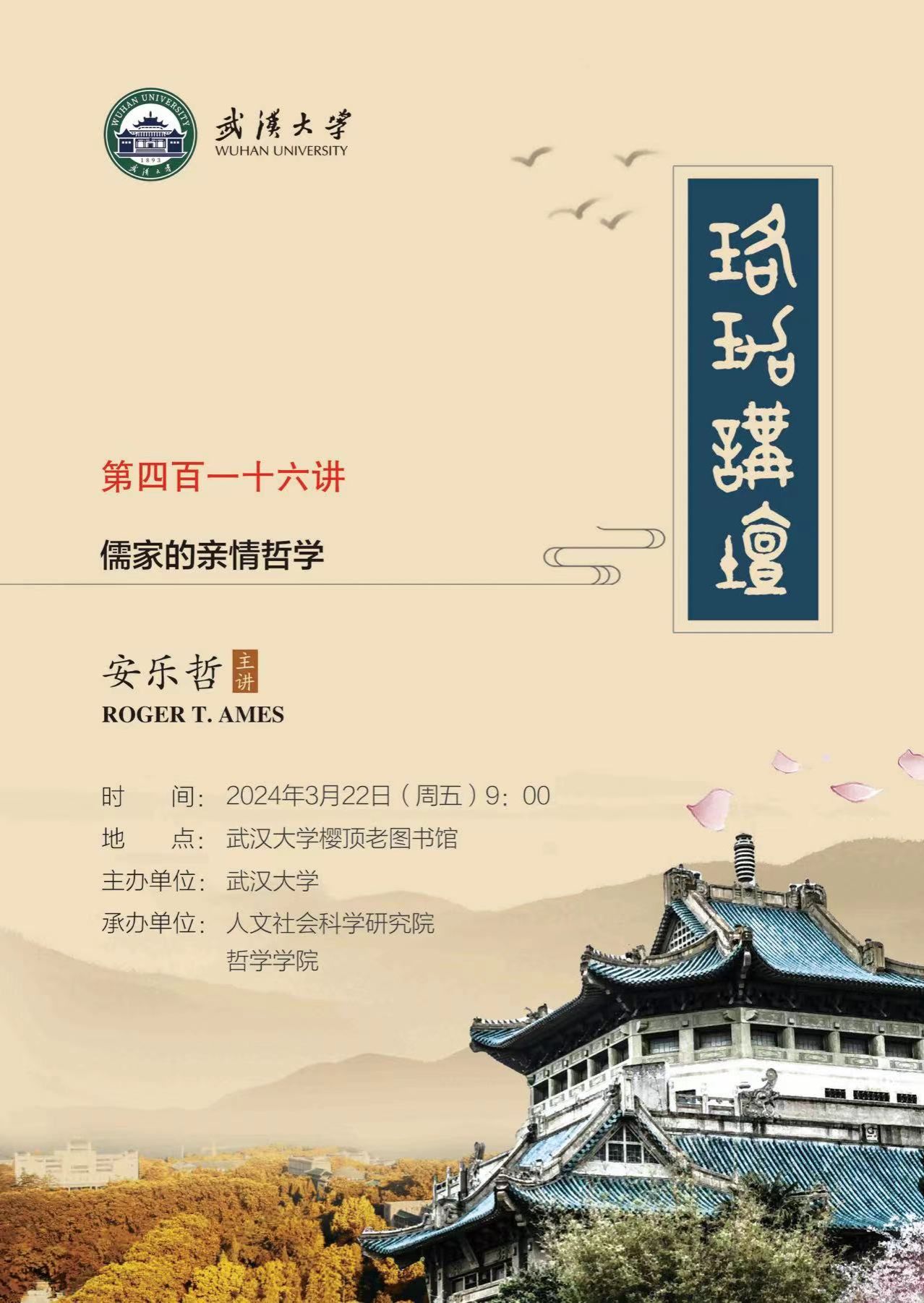 【3月22日】珞珈讲坛第416讲 ▏安乐哲Roger T. Ames:儒家的亲情哲学