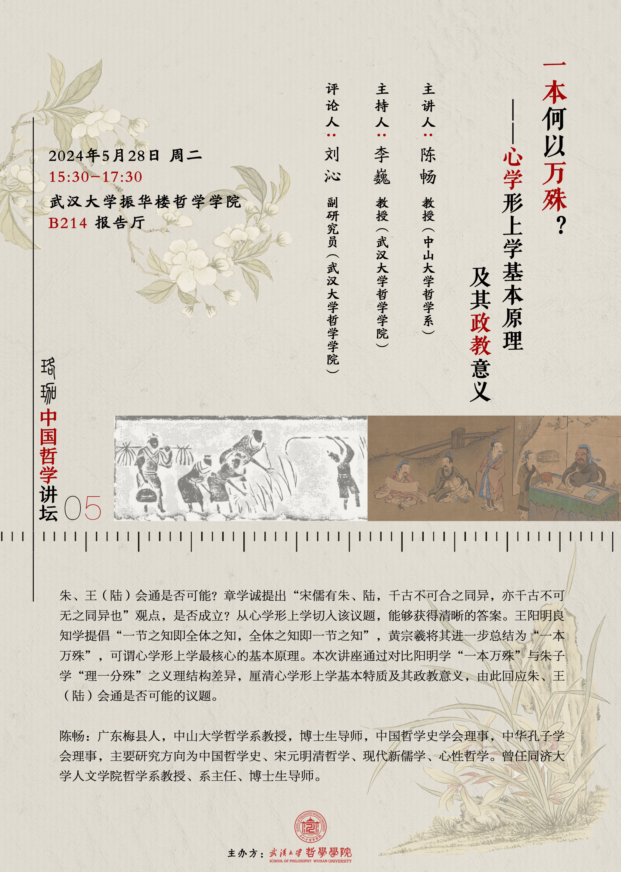 【5月28日】珞珈中国哲学论坛 ▎一本何以万殊?——心学形上学基本原理及其政教意义