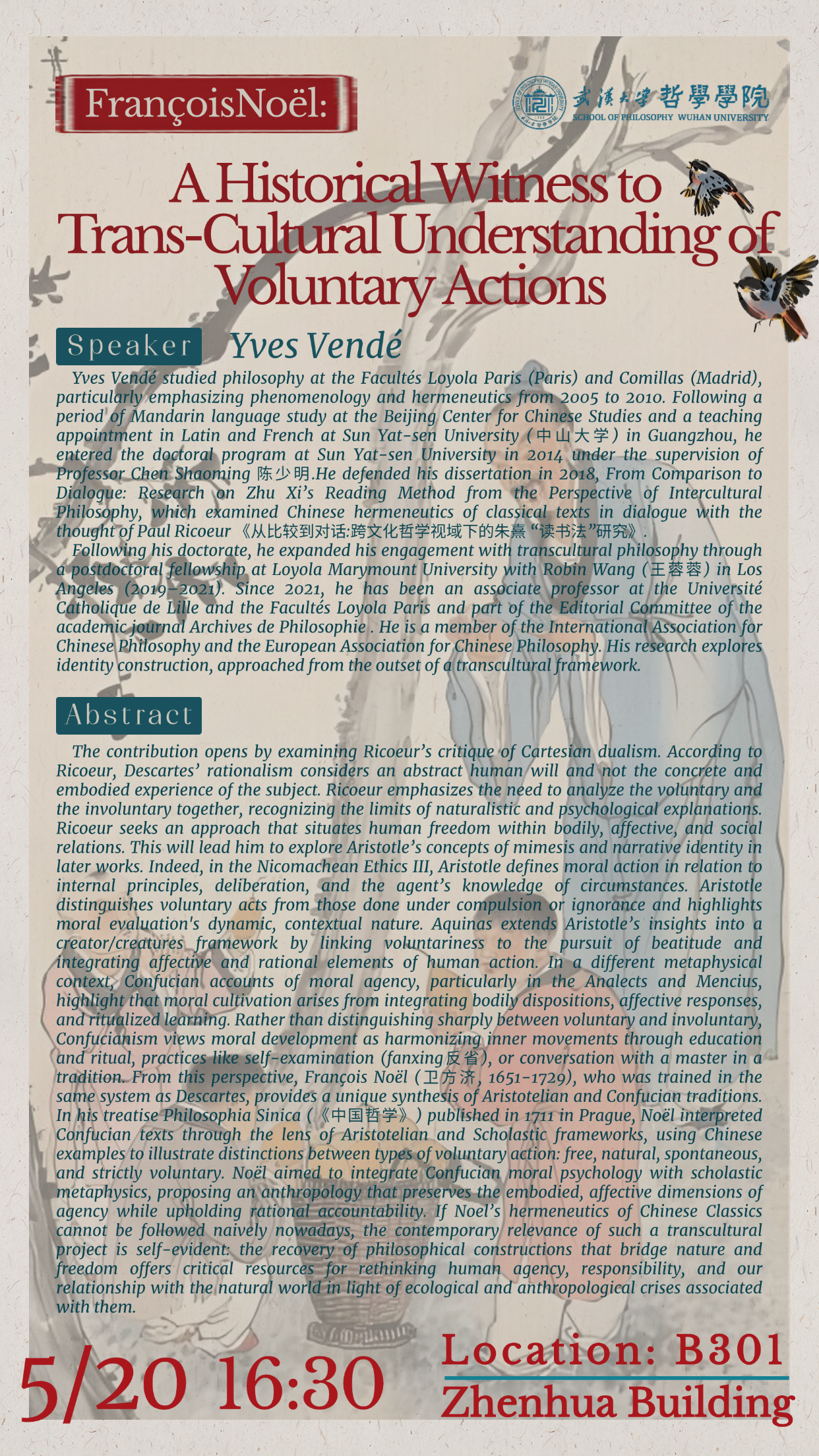 【5月20日】讲座预告 | François Noël: A Historical Witness to Trans-Cultural Understanding of Voluntary Actions