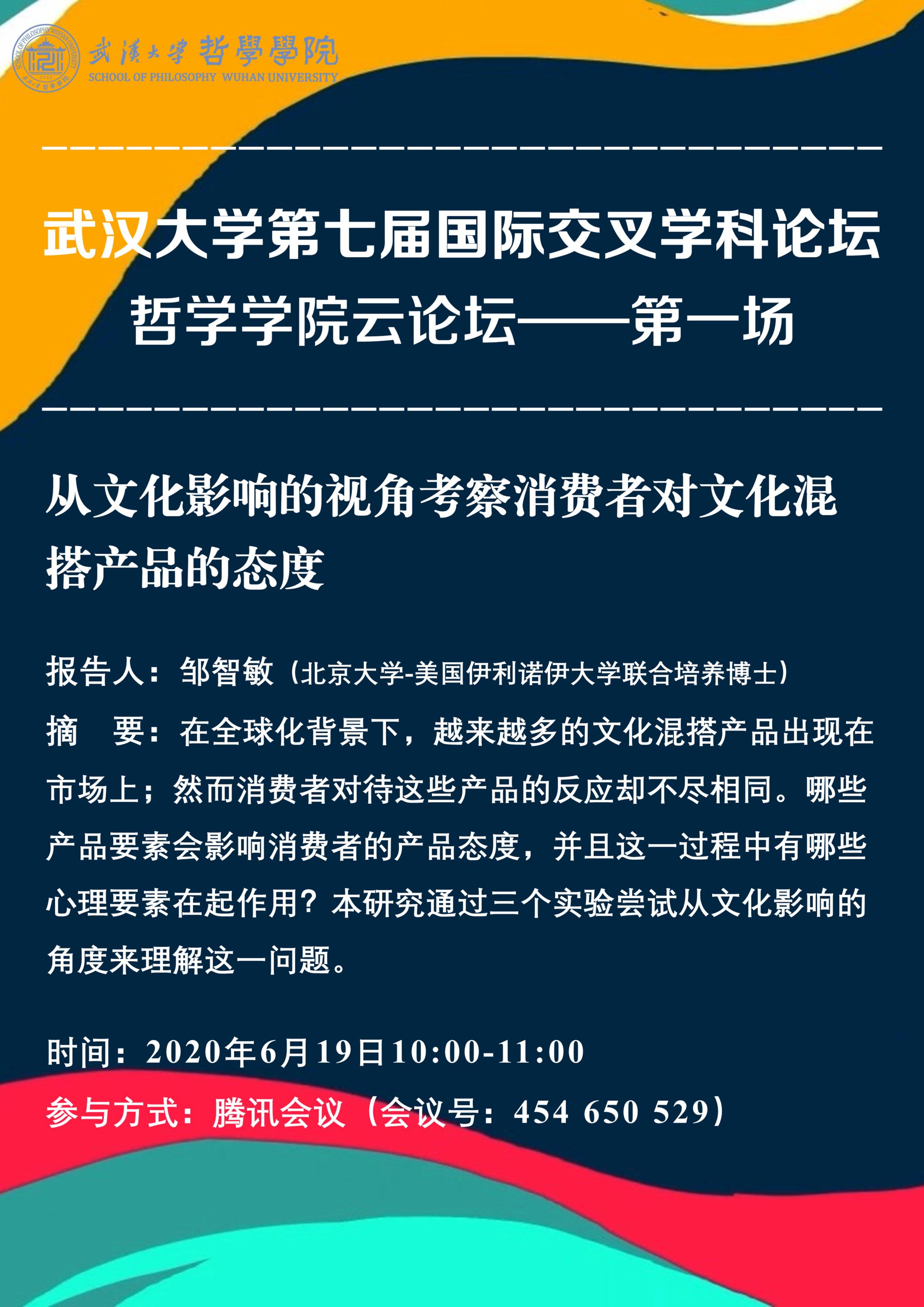 【6月19日】成人视频 第七届国际交叉学科论坛 成人视频 云论坛——第一场:从文化影响的视角考察消费者对文化混搭产品的态度