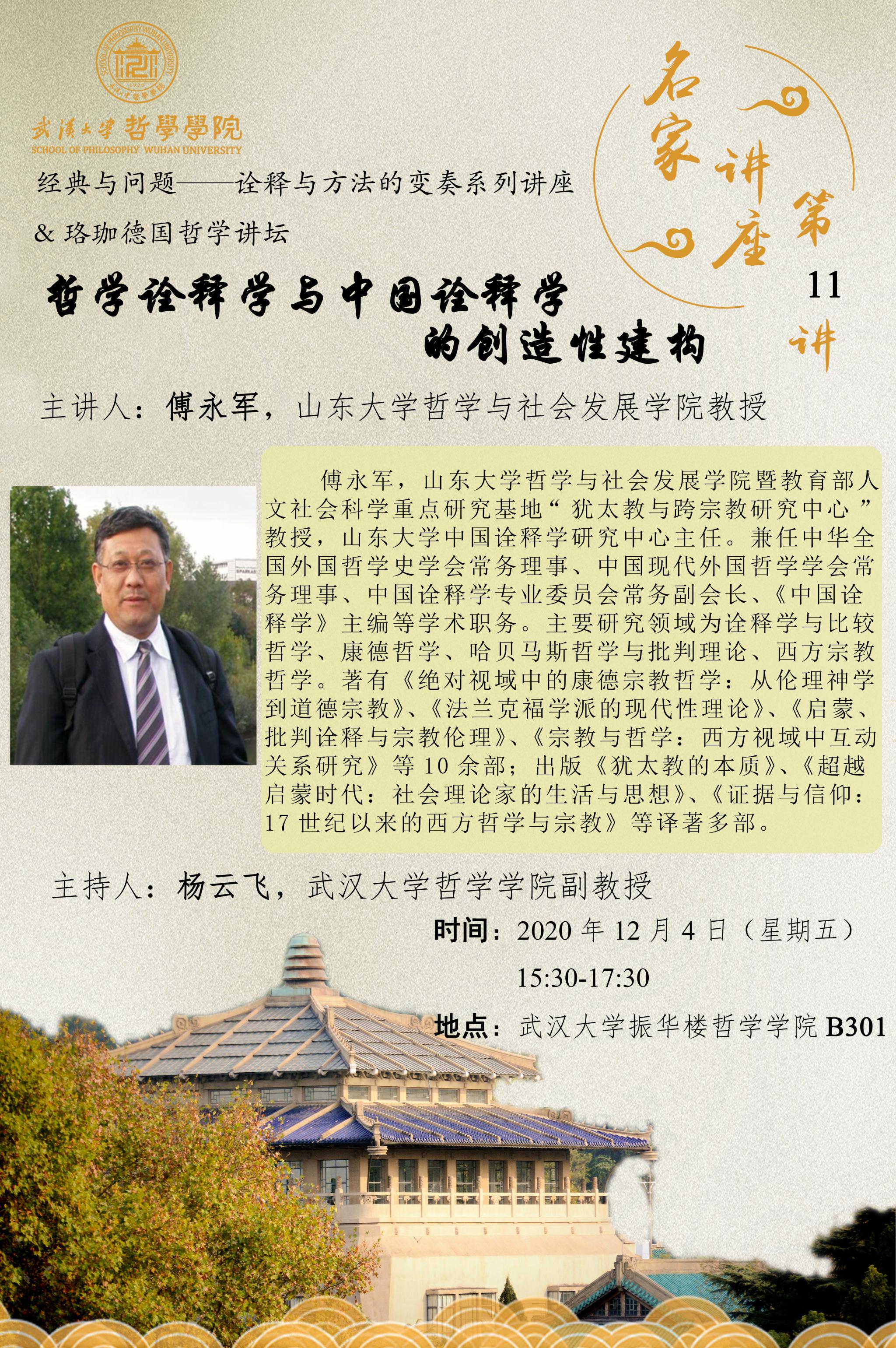【12月4日】名家讲座第11讲:哲学诠释学与中国诠释学的创造性建构