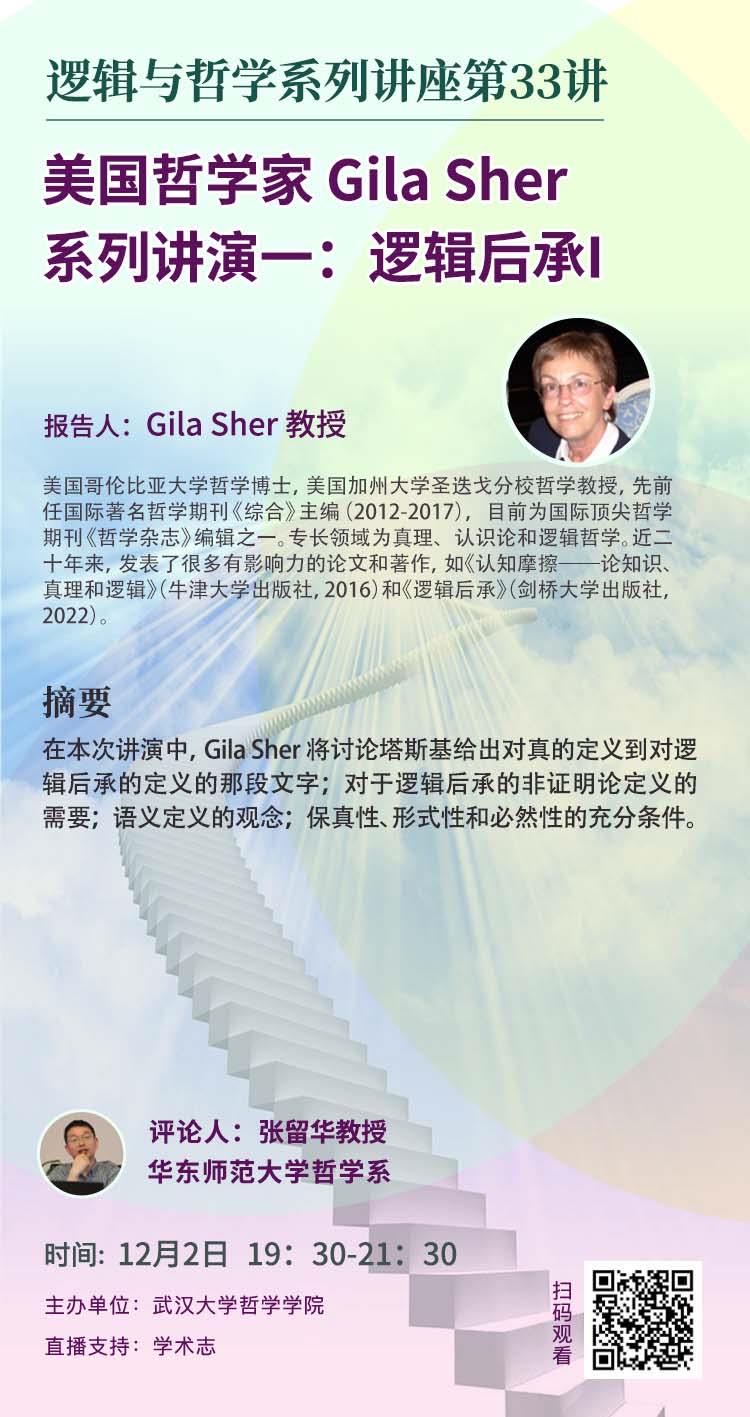 【12月2日】美国哲学家Gila Sher系列讲演一:逻辑后承 I ——逻辑与哲学系列讲座第33讲