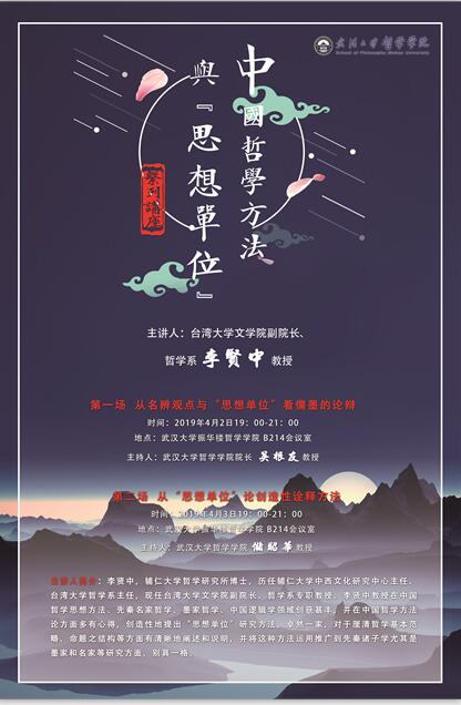 【4月2日—3日】系列讲座:中国哲学方法与『思想单位』