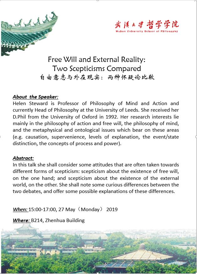 【5月27日】自由意志与外在现实:两种怀疑论比较