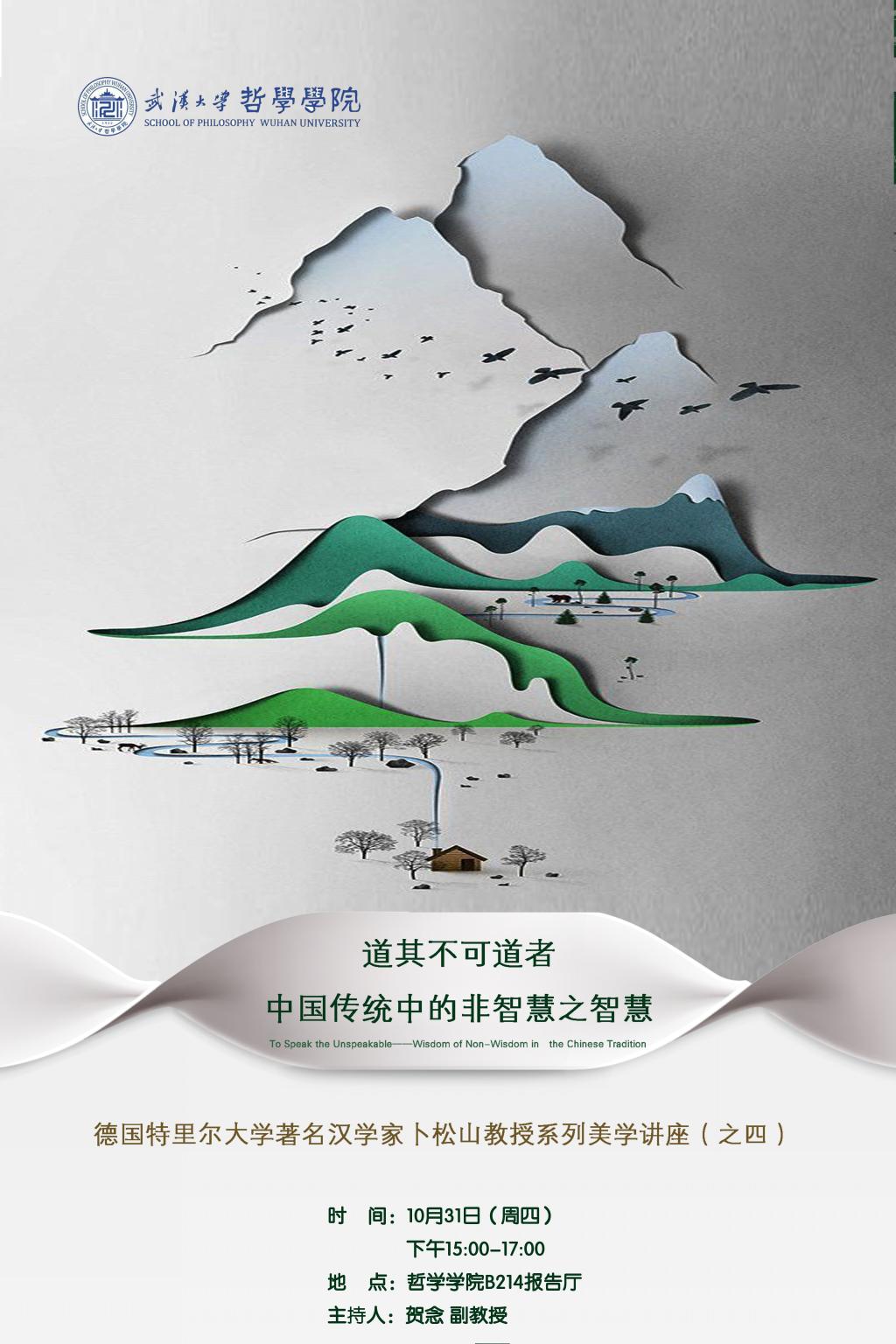 【10月31日】卜松山教授系列美学讲座之四:道其不可道者中国传统中的非智慧之智慧