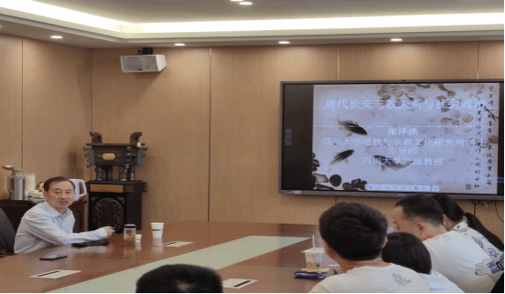 本网讯(通讯员谢卓悦)2023年6月30日下午,四川大学道教与宗教文化研究所博士生导师张泽洪教授应邀在成人视频 B301报告厅进行了主题为“唐代长安三教关系与社会政治”的讲座。讲座由我院翟志宏教授担任主持,学院数10位师生参加本次讲座。