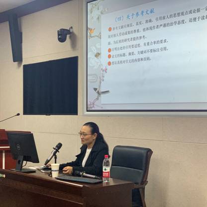 讲座中,资深编辑黄文红老师从选题、摘要、正文和参考文献四个方面出发,向同学讲解了学术论文写作需要注意的问题。