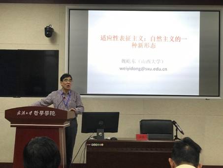 山西大学哲学社会学院魏屹东教授报告了“适应性表征主义:自然主义的一种新形态”,试图通过定义来消除意识的解释鸿沟问题。魏屹东教授指出,“适应性表征”是指认知系统具有在特定环境或语境中自主地表征目标对象的能力,且这种能力能够随着环境或语境的变化而自主调整和提升。按照这个定义,适应性表征不仅是自然认知系统的本质属性,也是人工认知系统的核心属性。魏屹东教授的理论引发了与会学者的热烈讨论。朱志方教授提出了质疑,指出人类的认知系统中有非表征的部分,如果人工智能系统仅仅要求表征性的认知系统也许还不够完善。魏屹东教授对问题和质疑一一做出了回应。