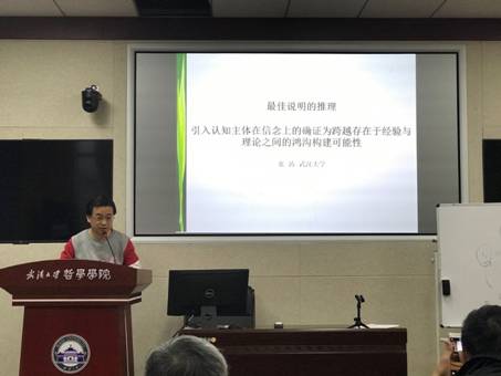 之后,熊文娴副教授作了“论理论间关系、间接确证与非充分决定”的报告。熊文娴副教授从非充分决定问题的间接确证反驳入手,对理论的间接确证背后的五条关系进行了一一的考察与反驳。在随后的点评和提问环节,王振副教授对“后承”概念提出了疑问;潘天群教授对五种关系的划分提出了不同意见;朱志方教授澄清了科学实在论与唯物主义的关系,认为强非充分决定论无法反驳;潘磊副教授认为,可以尝试调整“证据”范畴来规避非充分决定问题问题。熊文娴副教授对疑问和质疑分别进行了回答和回应。