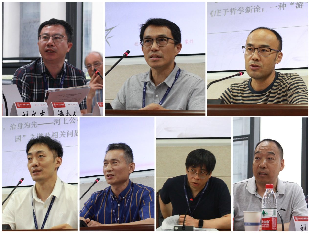 第三组由厦门大学谢晓东主持,中央民族大学刘成有评议。中国人民大学谢林德教授以《庄子》的小大之辨为切入点,分析庄子关于比例的各种用法和涵义,及其对数概念的哲学诠释。湖南师范大学萧平从庄老互释、由老导庄的角度辨析了《老子》第四十一章“大器晚成”与“大器免成”的差异,通过以老解老的方式论证与支持后者。贵州中医药大学赵景飞通过说明“游”的意蕴说明庄子哲学在理想与现实之维的张力。华南师范大学马兵从理论内部阐明河上公《老子章句》“理身理国”的治理思想。南京信息工程大学郭刚讨论了中医哲学以气为本的本体论思想与以气为主的认识途径。西南政法大学黄熹从中西比较的视野指出作为中国哲学概念的“万物”的特殊性。在评议和讨论环节,刘成有指出本组发言大都为对道家哲学的研讨,体现了对于萧先生的道家型人格和气象及其思想的充分继承与发展。