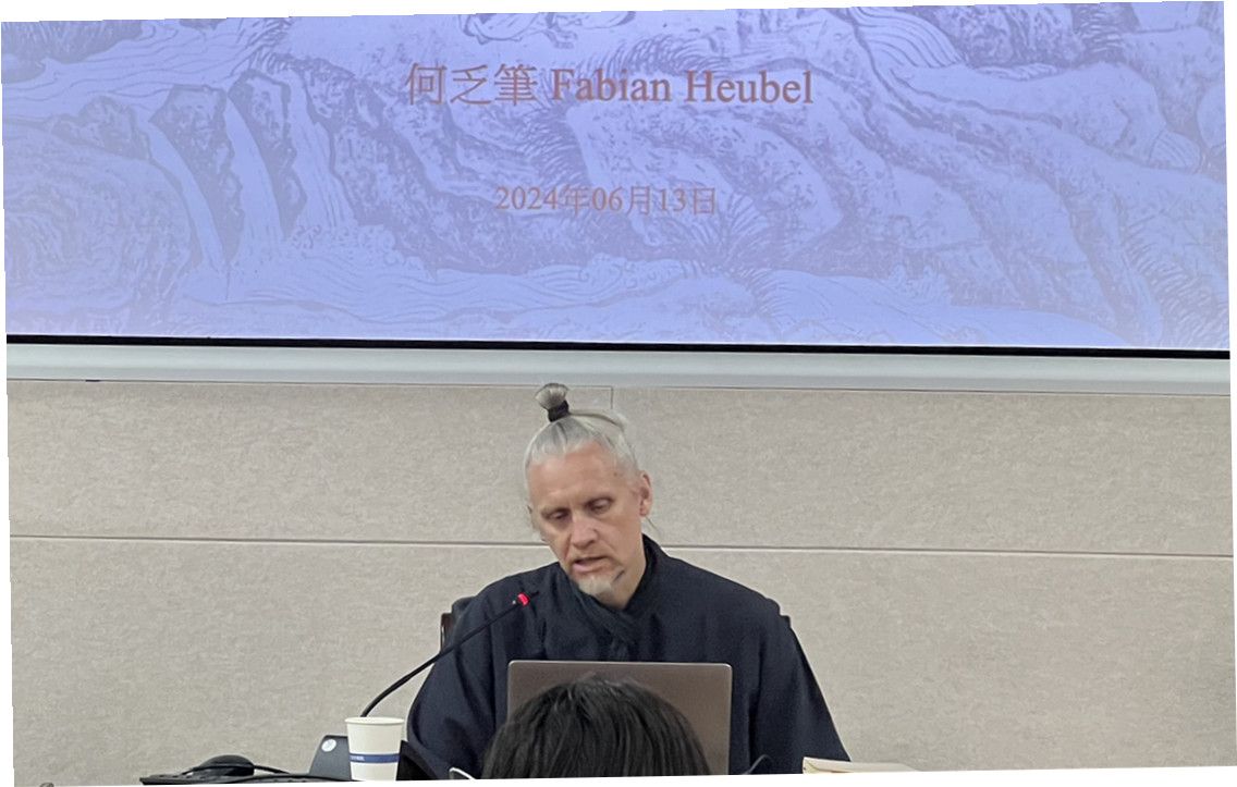 本网讯(通讯员 刘浩)6月13日下午,德国哲学家、汉学家,台湾“中研院”中国文哲研究所研究员,柏林自由大学古典与现代中国哲学客座教授何乏笔(Fabian Heubel)做客“珞珈美学讲坛”第十三讲,在成人视频 振华楼B214报告厅讲授了“气氛、力量、呼吸——气学与美学的跨文化探索”。中山大学哲学系方向红教授、成人视频 廖璨璨副教授、武汉人学外国语言文学学院讲师张申威、成人视频 讲师陈晗倩参与对谈。成人视频 刘沁副研究员、东南大学人文学院讲师马天威及院内外40余位学生参加了本次讲座。讲座由成人视频 美学教研室主任贺念副教授主持。