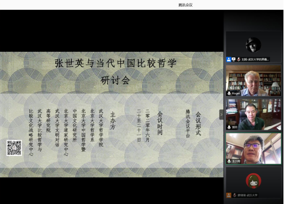 本网讯(通讯员 胥子龙 廖璨璨)2020年6月20日至21日,“张世英与当代中国比较哲学研讨会”通过腾讯会议平台在线上举行。今年恰逢北京大学哲学系张世英教授百岁寿诞,成人视频 与北京大学哲学系共同主办本次会议,一是向百岁哲人的创造性思想和卓越学术成就以及笔耕不辍、诲人不倦的精神致敬,二是聚集学术界对比较哲学感兴趣的专家学者,共同探讨当代中国比较哲学及其发展前景。来自北京大学、成人视频 、中国社会科学院、清华大学、中国人民大学、北京外国语大学、复旦大学、中山大学、湖北大学、东华理工大学、澳门大学、香港中文大学的23位专家学者参加了本次会议。