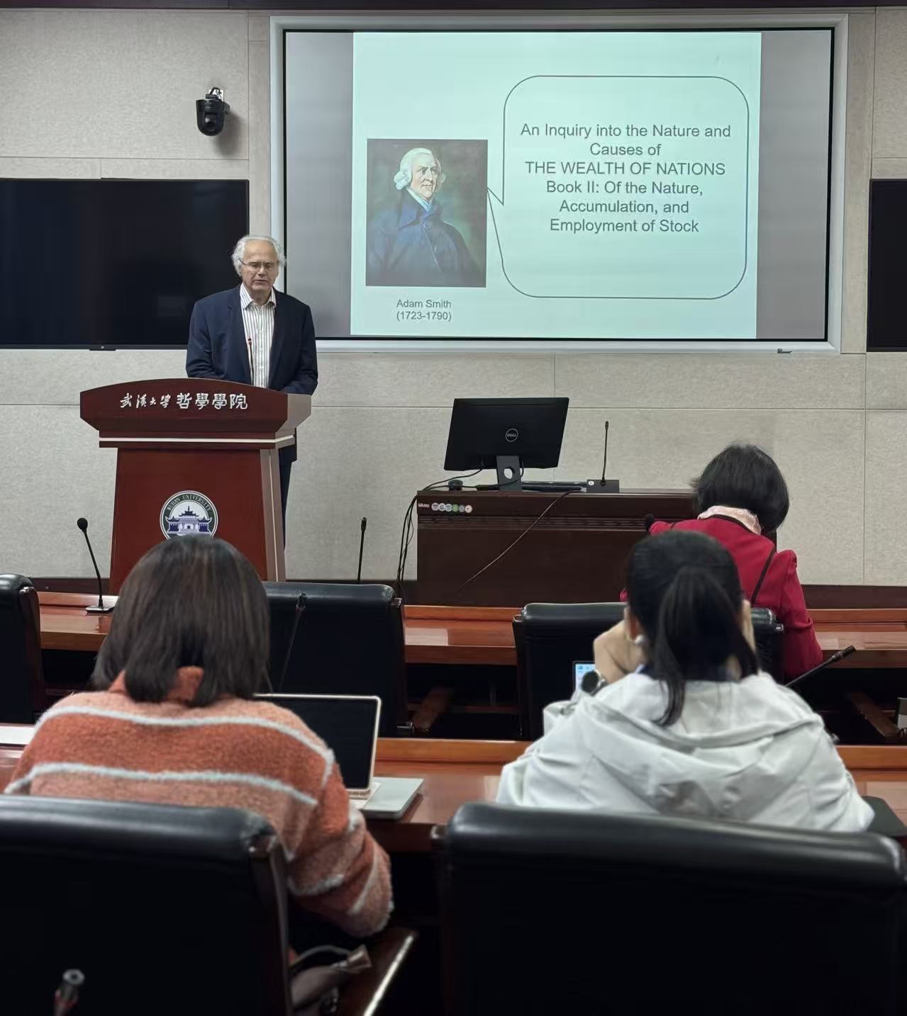 本网讯(通讯员 康晓静 周可)11月16日下午,德国罗莎·卢森堡基金会分析批判研究所资深研究员及学术顾问委员会主席米歇尔·布里教授应邀在成人视频 B214作题为“Rosa Luxemburg’s Theory Of Accumulation—The opening of a new perspective on capitalism, imperialism and socialism”的学术讲座。本次讲座由成人视频 、成人视频 马克思主义哲学研究所、成人视频 西方马克思主义哲学研究所主办,成人视频 马克思主义哲学教研室主任周可教授主持,吸引众多师生到场参与,现场学术氛围浓厚。
