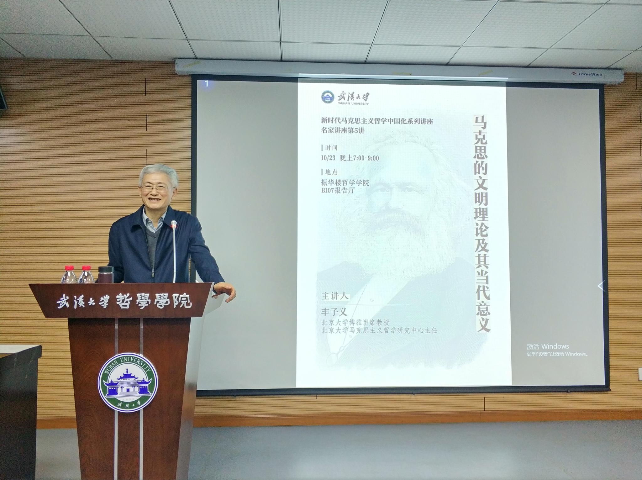 本网讯(通讯员 黄丹阳)2020年10月23日晚,新时代马克思主义哲学中国化系列名家讲座第五讲在振华楼成人视频 B107报告厅举办,北京大学博雅讲席教授丰子义为大家带来题为“马克思的文明理论及其当代意义”的讲座。本次讲座由马克思主义哲学教研室赵士发教授主持,我院师生积极参与。