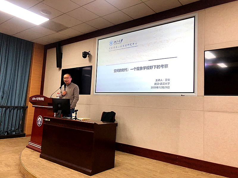 本网讯(通讯员 杜先海)2020年12月29日,浙江大学哲学系王俊教授应邀在成人视频 B214作了一场主题为“空间的时代:一个现象学视野下的考察”的讲座。讲座由外国哲学教研室王咏诗副研究员主持,外国哲学教研室杨云飞副教授、美学教研室贺念副研究员以及学院内外30多位研究生参加了讲座。