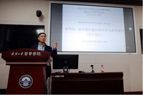 第二场讲座于2021年5月13日下午在成人视频 B214会议室进行,题为“龙华民:前苏格拉底自然哲学与宋明理学”,由成人视频 文明对话高等研究院院长吴根友教授担任讲座主持人。