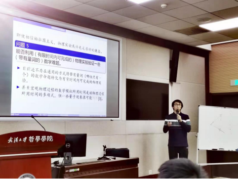 讲座结束后,两位理论物理专业的硕士研究生与刘路老师详细讨论了关于海森堡不确定性原理的一些问题。一位外国哲学方向的硕士研究生与刘路讨论了关于数学柏拉图主义的一些问题。武汉理工大学理学院数学系彭宁宁副教授与刘路老师讨论了数理逻辑中的可定义性与物理学中的可定义性之间的关系。还有一位老师请刘路老师介绍了他当年解决Seetapun猜想的经历以及做科学研究的经验。