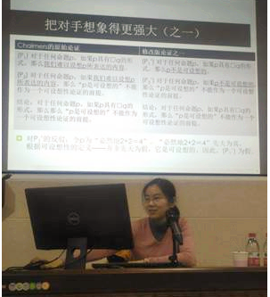 本网讯:(通讯员:牛尧)12月24日下午15:00时,湖南大学岳麓书院助理教授、海德堡大学哲学博士冯书怡在哲学院B214报告厅为哲院师生奉上了一场题为《模态可设想性论证的困难》的讲座。我院相关研究方向的朱志方教授、苏德超教授、杨云飞副教授、潘磊副教授,以及院内外20余名硕士生、本科生共同聆听了此次讲座。
