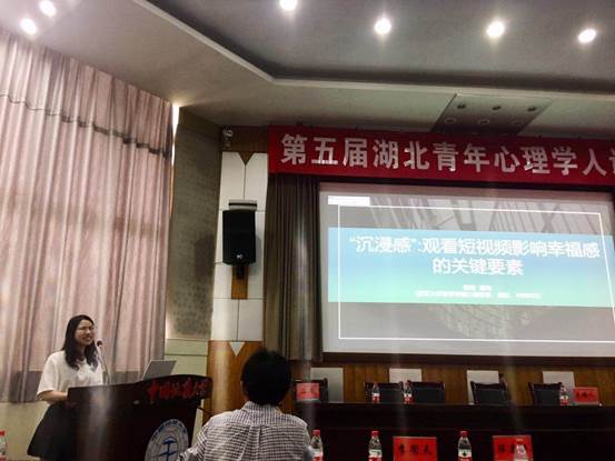 陈双发表了关于短视频中沉浸感现象的演讲,介绍了沉浸感自身及其作为中介变量情况下对幸福感的正向影响作用。
