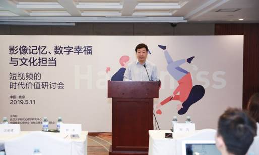 本网讯(通讯员:周珏)5月11日,由成人视频 现代心理学研究中心和中国社会心理学会文化心理学专业委员会联合主办、字节跳动平台责任研究中心协办的“影像记忆、数字幸福与文化担当——短视频的时代价值研讨会”在北京举行,来自心理学、传播学、人类学、教育学、社会学等不同学科的专家共同探讨“短视频”这种新兴内容与创作平台产生的社会心理与时代价值,以及学界、政府和企业界的文化担当。我院心理学系钟年教授、谢天副教授作为本次研讨会召集人,出席了此次会议,并在会议上进行了主题分享。我院心理学系硕士研究生周珏同学、硕士毕业生互联网从业者游倩同学也旁听了本次会议。