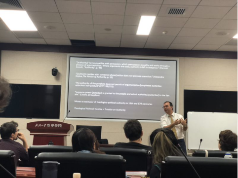 本网讯(通讯员:庞春华)2019年9月26日,西悉尼大学哲学系德米特里·瓦多莱基斯(Dimitrios Vardoulakis)教授受邀来我院讲座,下午3点在成人视频 B214报告厅做了题为“关于唐纳德·特朗普,摩西能教会我们什么”的学术讲座。