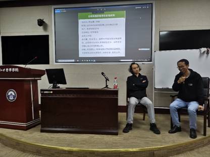 本网讯(通讯员:田昶奇)2019年10月23日晚,清华大学哲学系蒋运鹏副教授与华中科技大学哲学系徐敏副教授应邀在成人视频 B214报告厅作了一场主题为“分析风格的哲学历史性研究”的讲座。讲座由我院外国哲学教研室冯书怡副教授主持。外国哲学教研室苏德超教授、逻辑学教研室程勇教授、科学技术哲学教研室叶茹副教授以及学院内外50余位研究生参加了讲座。
