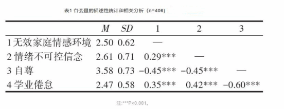 【关键词】无效家庭情感环境;学业倦怠;情绪不可控信念;自尊;