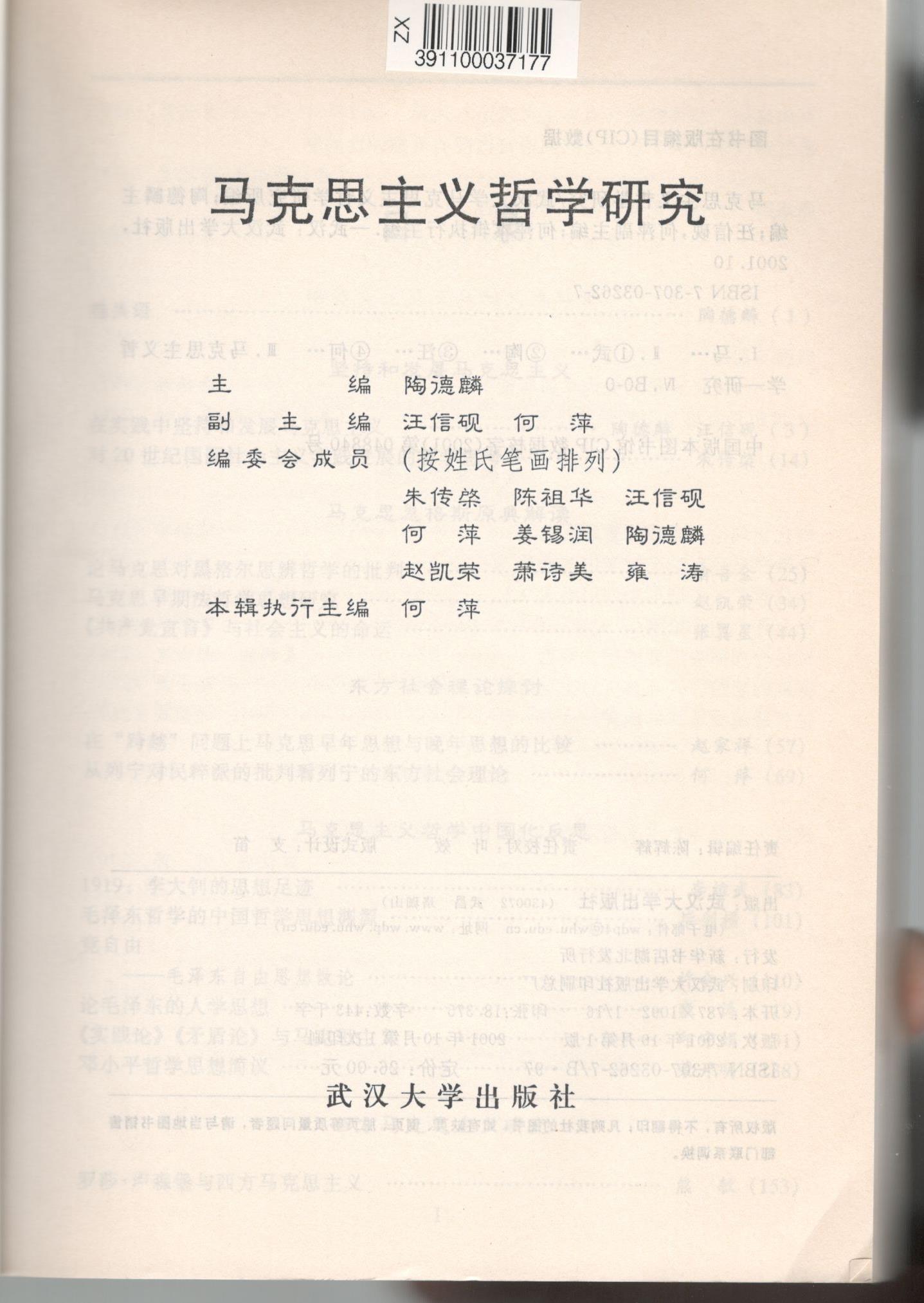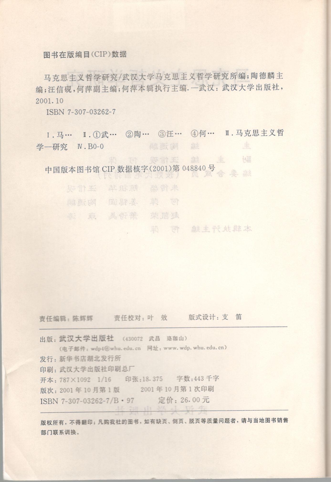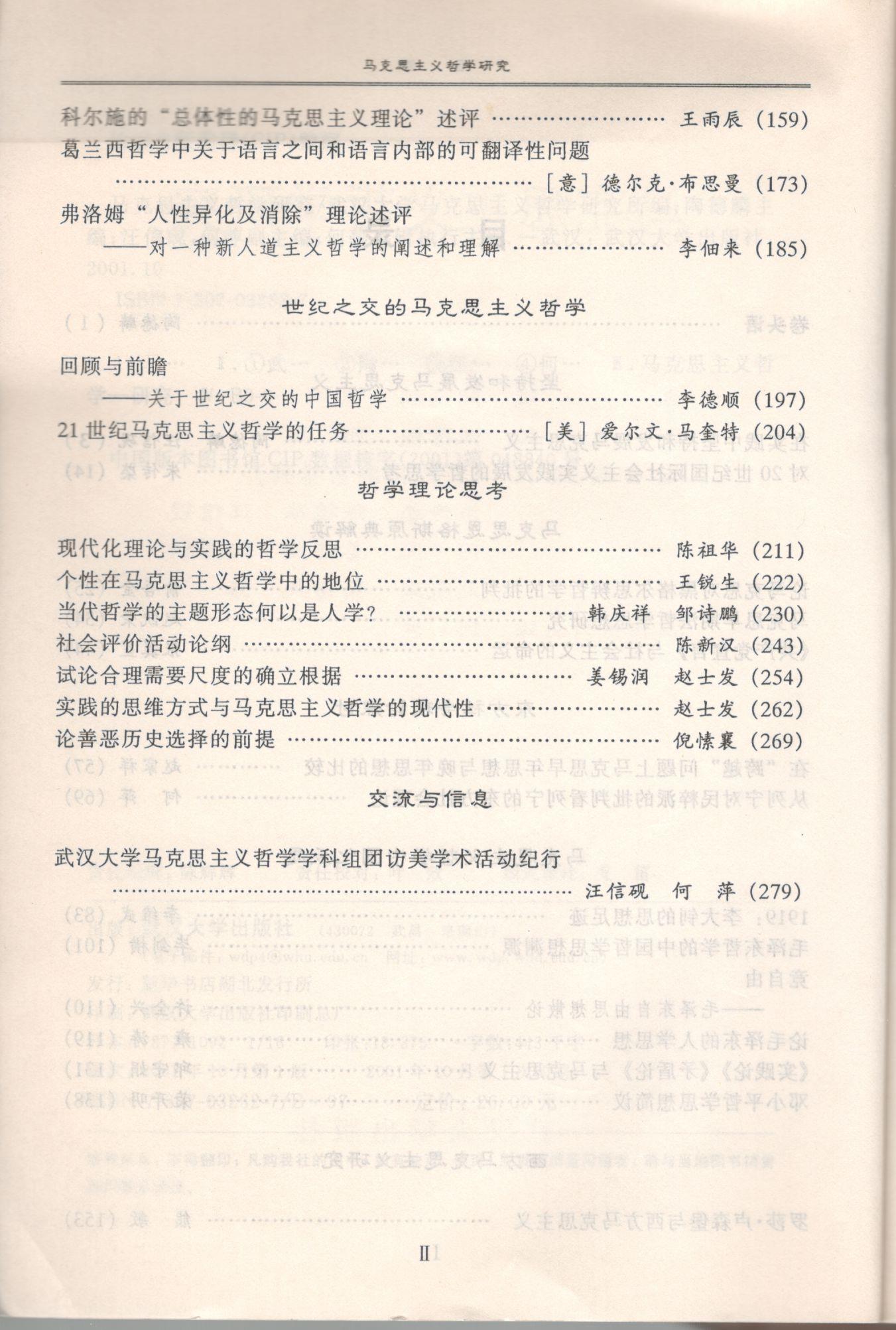 《马克思主义哲学研究》(2001年)