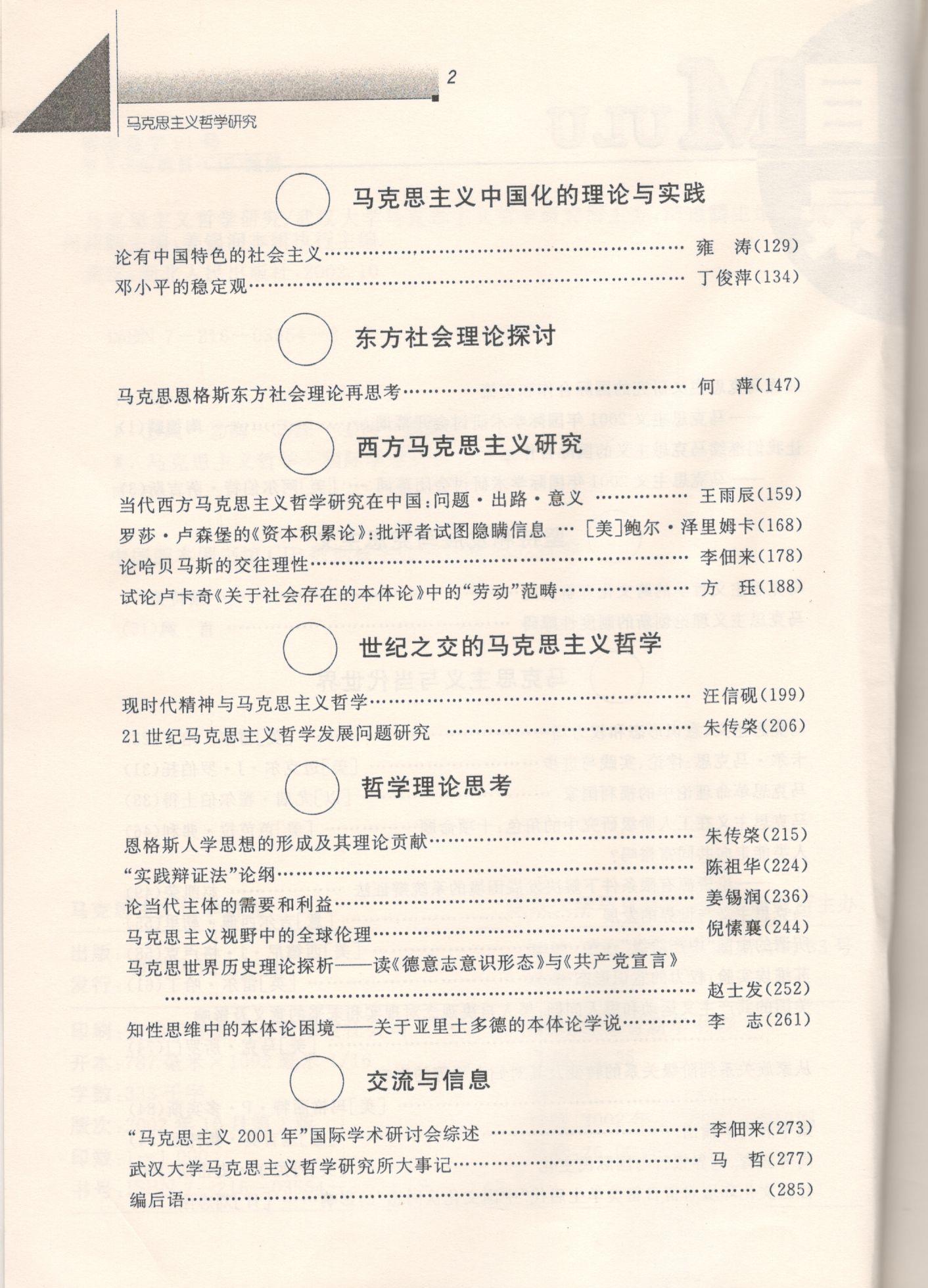 《马克思主义哲学研究》(2002年)