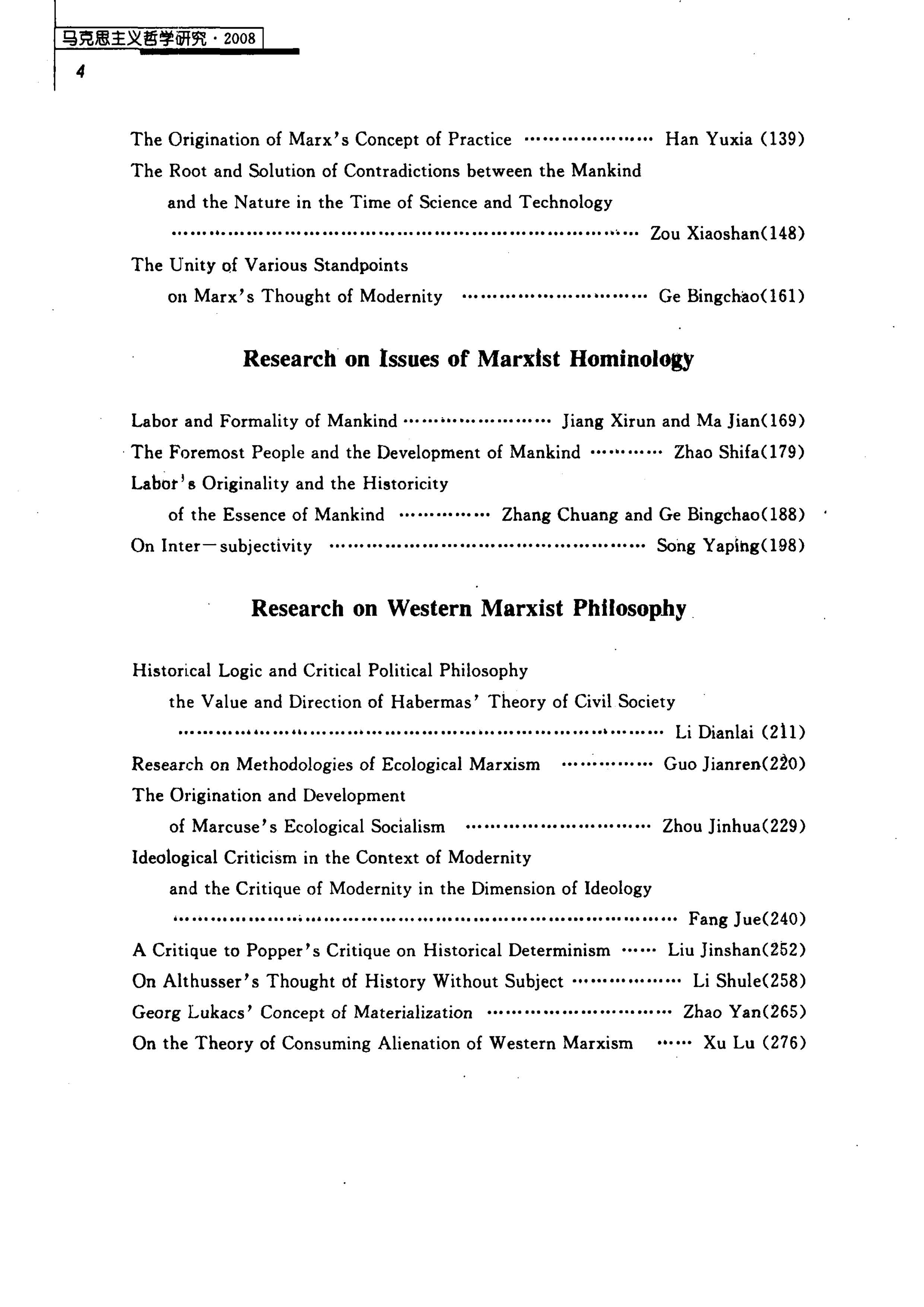 《马克思主义哲学研究》(2008年)