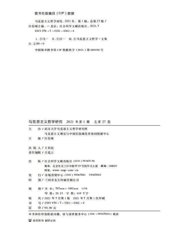 马克思主义哲学研究 2021年第1期 总第27期(1).pdf
